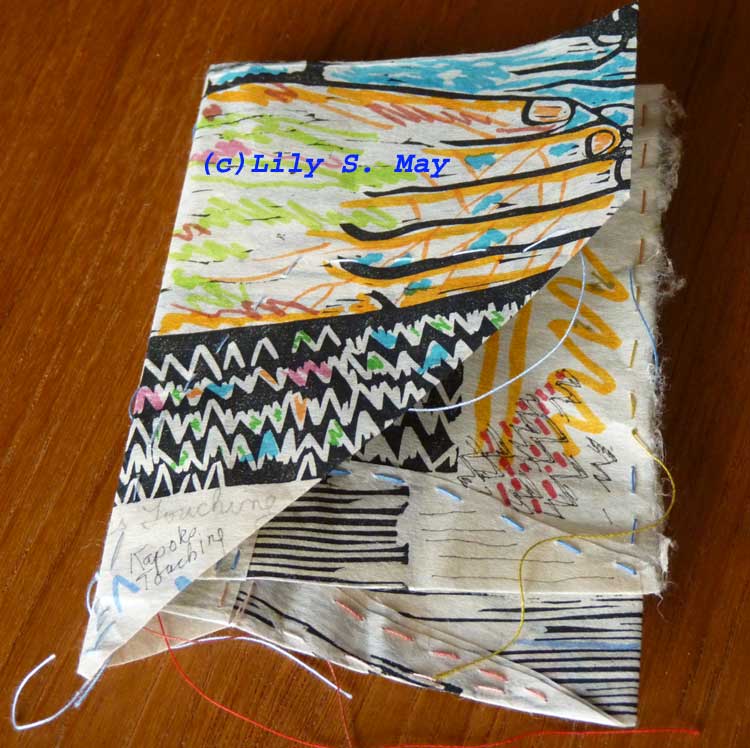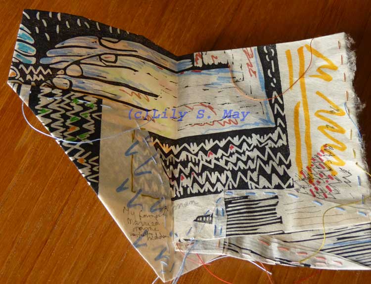 Kapoks Touching Booklet made by Lily S. May in 2013, sent out as mail art.I may put some of this work in my etsy shop, but for now I’ve sent one of the booklets out as my first piece of mail art. I first learned about mail art a couple of years ago. Mail art or postal art consists of small pieces of art sent to and from artists all over the world. Usually if you receive a piece of mail art, you send something back to the artist it came from.