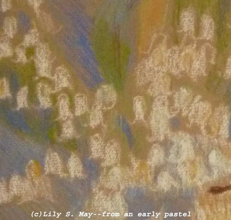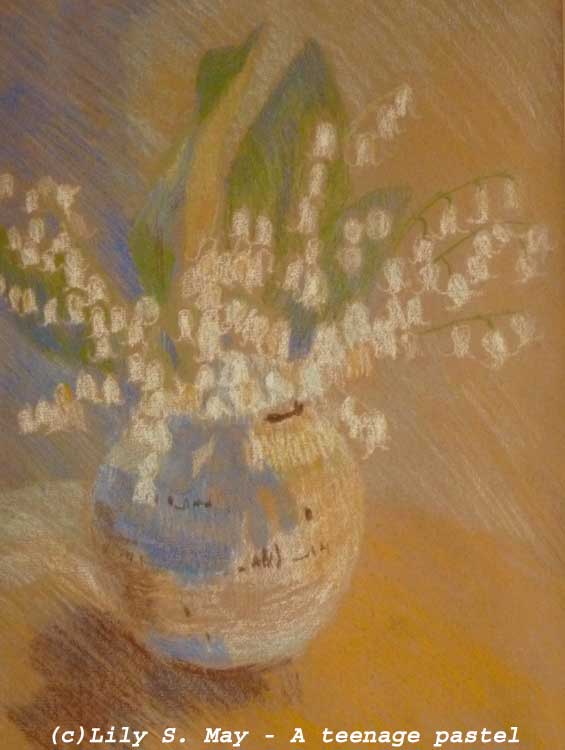 When I was around 16, I made a pastel drawing of lilies of the valley in a ceramic bowl. I loved those flowers and was very happy with what I’d done. That drawing was saved, I don’t know by whom, and now hangs on the wall of one of my relatives. When I saw the pastel recently, it brought to mind my high school art teacher’s negative sarcastic reaction to it, which was hurtful to me. By instructing me in a punishing way, I learned more about not measuring up than about how to improve my work.