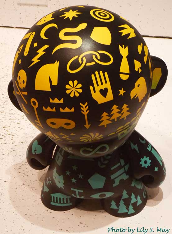 I went to an engaging art show last week with a friend. It’s called This is Not a Toy and it’s at the Design Exchange in Toronto. The show presents designer art toys that are “at the intersection of fine art, marketing, pop culture, product and graphic design.” The sculptures felt both somber and playful to me and I feel that is part of their strength. Here’s some images of the work. All artwork is copyrighted by the artists.