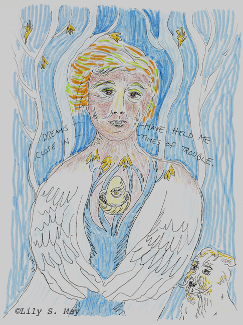 I’ve been experimenting with drawing more cartoons. That process led me to a small drawing continuing with the theme of dreams that I began in my first cartoon. After having done a number of works that felt too controlled, I made a loose unplanned sketch that felt freer to me. Afterwards, I added colour to the line drawing with pigment markers and some water soluble crayons. I think I’ll work on this theme further. I hear my unfinished linocut on Leonard Cohen’s Sisters of Mercy calling me. Why have you left me and when will you return? I haven’t answered yet, but, meanwhile, here’s the 2 recent drawings.