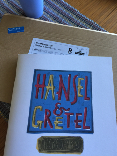 This week, I happily received the copy of Clive Hicks-Jenkins’ book, Hansel and Gretel. In it, he has brilliantly reimagined the fairy tale.  I ordered it last week from the U.K. and it arrived faster than some packages from other parts of Canada!