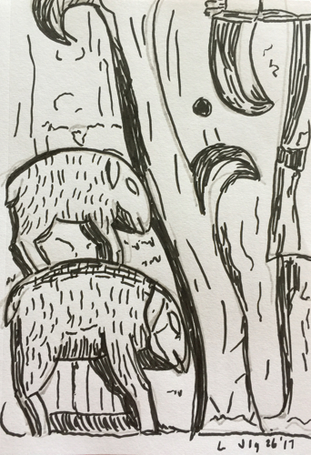 In these next two, I laid out general shapes in grey pen as guides and worked over them in black.