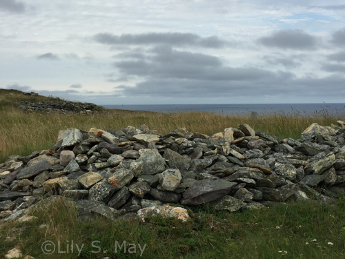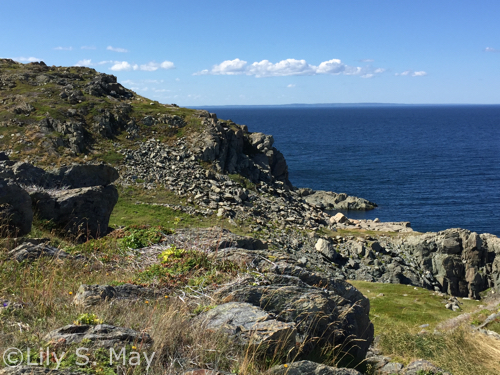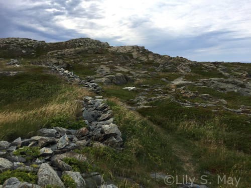 No drawings this time, but here’s photos of one of my favourite places that we visited in Newfoundland. It’s Grates Cove at the northern tip of the Avalon Peninsula. We visited twice, had an excellent meal at the Grates Cove Studio amidst terrific artwork and walked on trails overlooking the ocean and later amidst the remains of old dry stone walls that surrounded the gardens of early settlers.