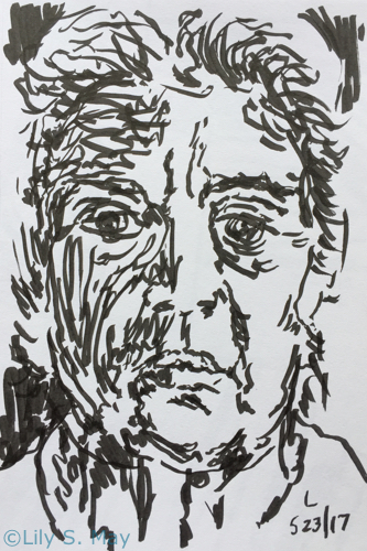 Several years ago, I spent a lot of time writing and I’d read versions of my poems out loud and record them to hear which version sounded best to me. Here’s a poem which will explain itself, followed by a recent drawing.