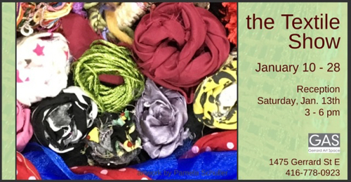 I’ve put 2 wall hangings in a textile show in Toronto at GAS–Gerrard Art Space. The show is an open call, non-juried exhibit. The reception will be this coming Saturday, Jan 13, and the show will last until Jan. 28. I haven’t shown much work physically in a few years, so this may be a way back.