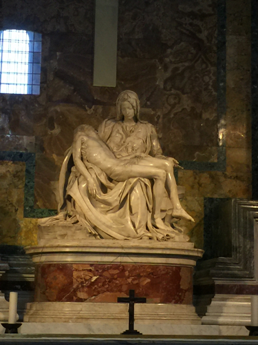 1. I just wanted to add that we went to St. Peter’s because the Pieta was there. Even though it’s behind glass (or plexiglass—don’t know which) its beauty and power came right through.