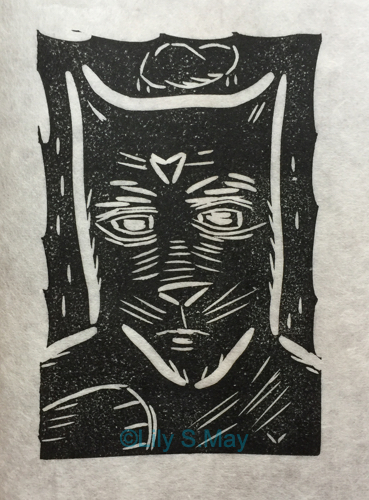As I carved this print, and saw it was an animal, I thought of the terrible recent news from the World Wildlife Fund that the population of wild animals has decreased by 60% since 1970!! I can see the animal in this print being either a ghost of the 60% or one of the 40% whose life may also be imperilled.