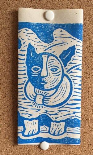 Here’s part of the proof of the lino block that I showed in my last post. The full print had a bit too much body and humorously looked like a cross between a cloud and sheep. When I played around with folding the paper, I preferred the image you see here. I’m going to print this narrower version in which I feel the shapes work better together.