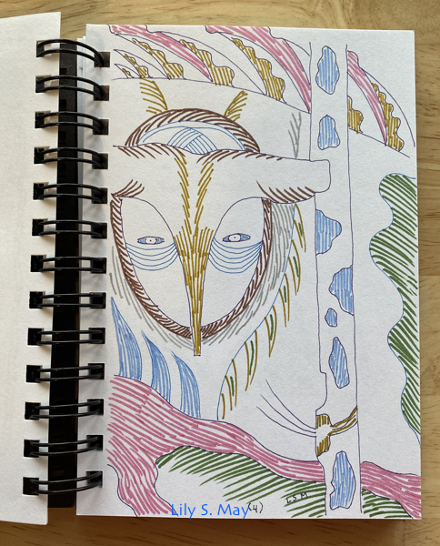 A few years ago, I took the first chapter of this saga and drew the words and images with felt pens in a small sketchbook. I’m going to post the 44 pages in that sketchbook over the next while.