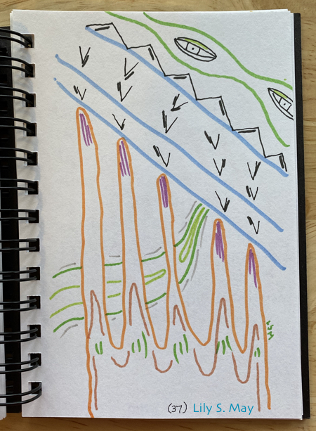 The Care of Latent Kittens story arose from a dream I had years ago. That story continues here, nearing the end of the sketchbook of writing and line drawings. To read about the dream and what led to this series, go to The Care of Latent Kittens. If you’ve missed any posts, you can see them in the posts following that initial one.
