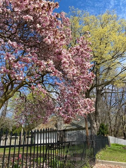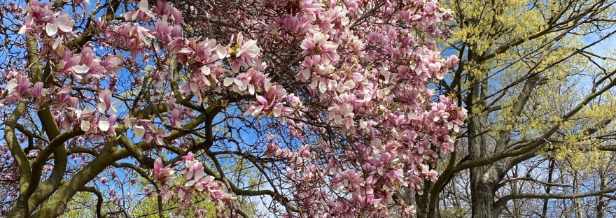 Last Saturday I went for a spring walk in a cemetery in a part of Toronto called Cabbagetown. The necropolis, which I had never walked through before, was established in 1850. It’s a large tree filled space with the graves of many people, some with monuments and others with simpler headstones and ground plaques. What first drew me to the cemetery was a large flowering magnolia at the gates. Inside, the birds were calling and singing in the trees. It was a peaceful setting that other people were also drawn to walking in, but with plenty of space for the distance needed these days. I thought of death as the backdrop to this time of pandemic and also as a companion of sorts that I’ve had for many years.