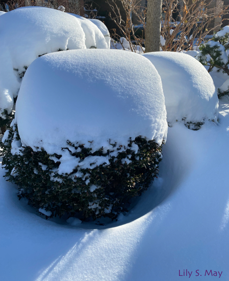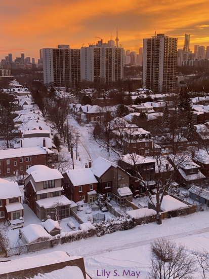 The first sizable snow came to Southern Ontario and Quebec yesterday. At the end of a grey and white day, the sky cleared and a dramatic sunset appeared. Today brought blue skies and sun on snow. I took a morning walk that greatly helped my spirits.