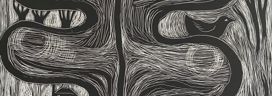 I received great news last week that a work of mine has been accepted into a juried show in Toronto. It’s an online drawing show at the Aird Gallery that will begin in either late March or early May. I’ll post more information once I receive the details. Here’s the scratchboard drawing that got in: