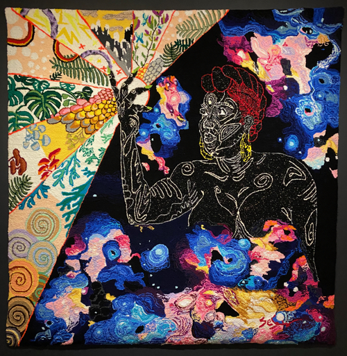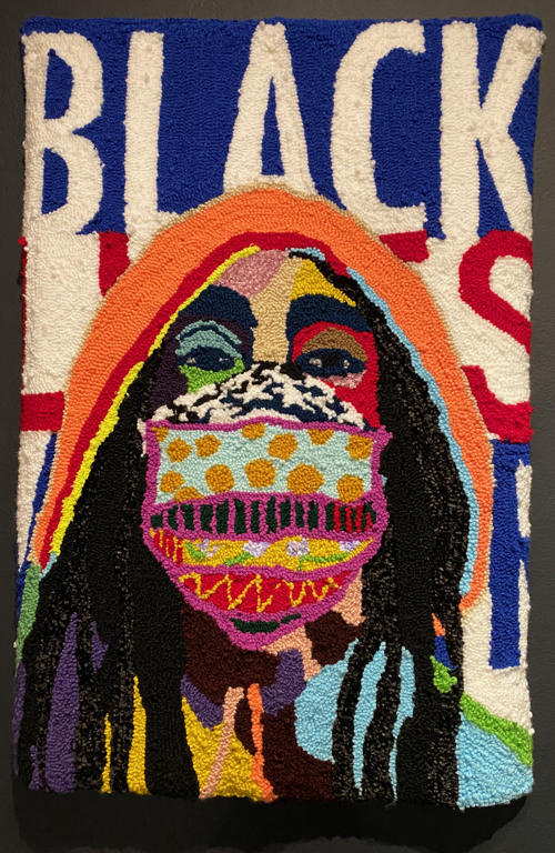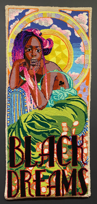 I’m very glad to have recently seen the hand tufted wall hangings of Simone Elizabeth Saunders. They are on display at the Textile Museum of Canada through January. Here’s several of her powerful and beautiful works from the exhibit.