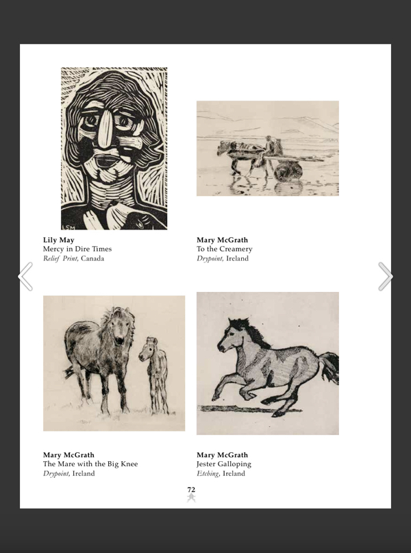 I have participated in two other BIMPE shows and have had my spirits boosted by being in the company of excellent printmakers. This year I’ve taken screen shots from the catalogue of the marvelous first, second and third prize winners selected by the jurors and of my entries (but of course!)