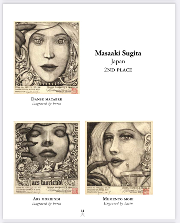 BIMPE stands for Biennial International Miniature Print Exhibition. The eleventh edition of that excellent show was due to take place in 2020, but you know what else happened then. The deadline for prints to be mailed in was in March 2020 and I had sent in my three entries by then.