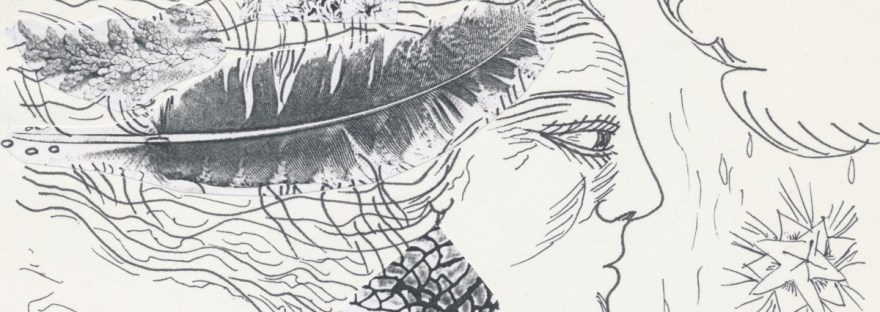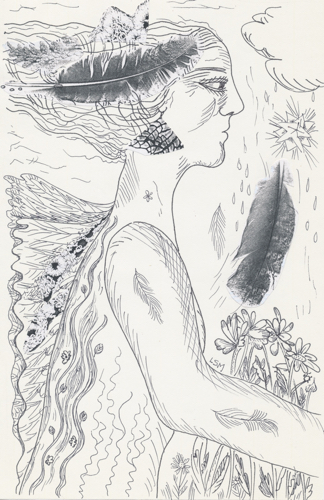 This past week, as I was pondering what my next post would be, I came upon a file folder I had filled with some old drawings. I made these sometime in the mid to late 1990s. They’re line drawings of fantasy worlds that I added photocopies of lace and feathers to. These are the original images that I planned on further copying and using on greeting cards. Whether or not I did so is now buried under the weight of nearly 30 years.