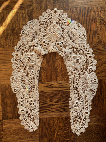 The lace that I photocopied at a local store is a beautiful piece I bought many years ago. I believe it must have been made as a collar of some sort. It’s quite amazing.