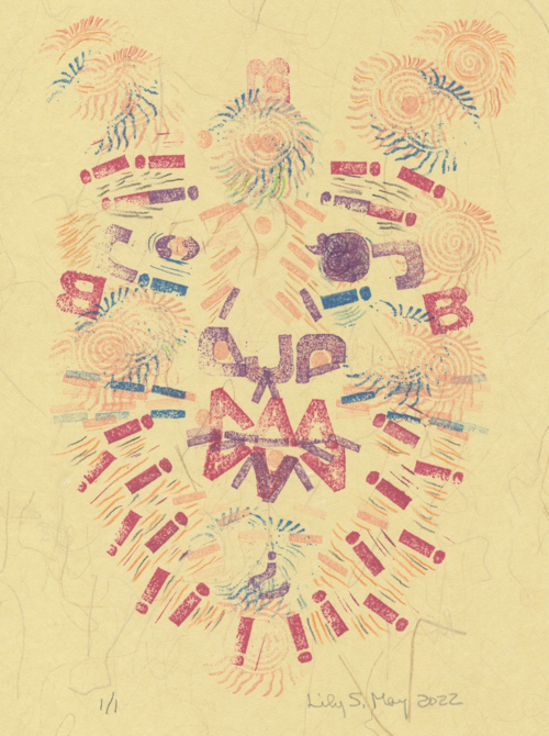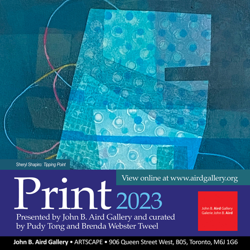 The print show I’m in is up online now. The show looks great, with a wide variety of printmaking methods and styles by 64 artists. You can see it as a slide show at the Aird Gallery site where you can also download a catalogue. My monoprint is on page 71 in the section on monoprints. I created the print using a variety of stamps I’ve made. (See also Some Good News.)