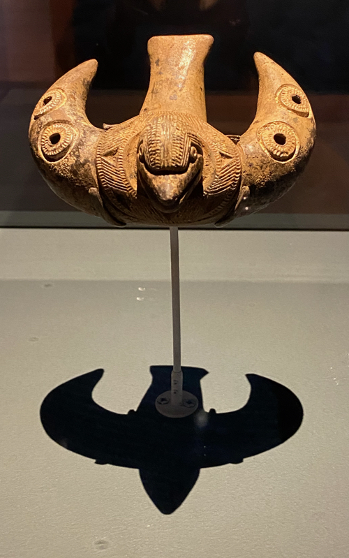 I wondered, ahead of time, if I’d be overwhelmed as I often am at exhibits with many small objects and written commentary on the walls. However, this was unlike past experiences when I have gone through exhibits barely able to focus on anything. What immediately caught my attention and held my interest were the words about the world view of the people which I found very moving and life affirming. Here’s part of the introduction: