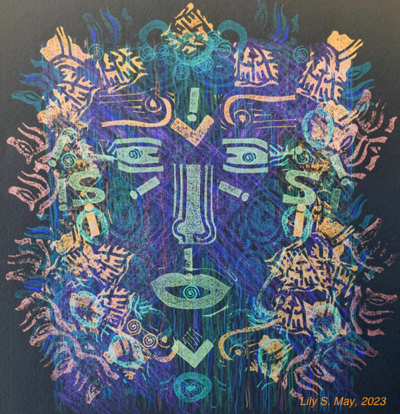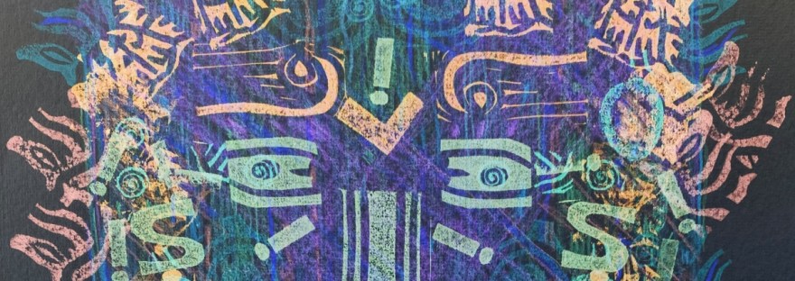 Here’s a stamped monoprint with inverted colours that is not by Chagall! Plus a poem I wrote in response to one of his paintings.